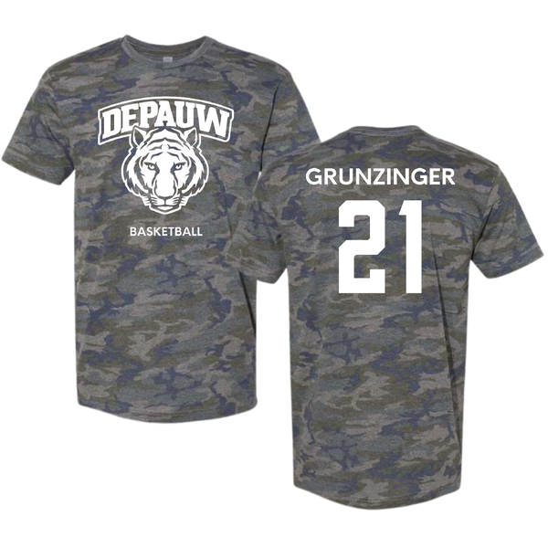 DePauw University Basketball (W) Vintage Camo Tee - #21 Josie Grunzinger
