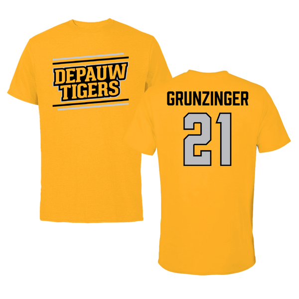 DePauw University Basketball (W) Gold Gameday Tee - #21 Josie Grunzinger