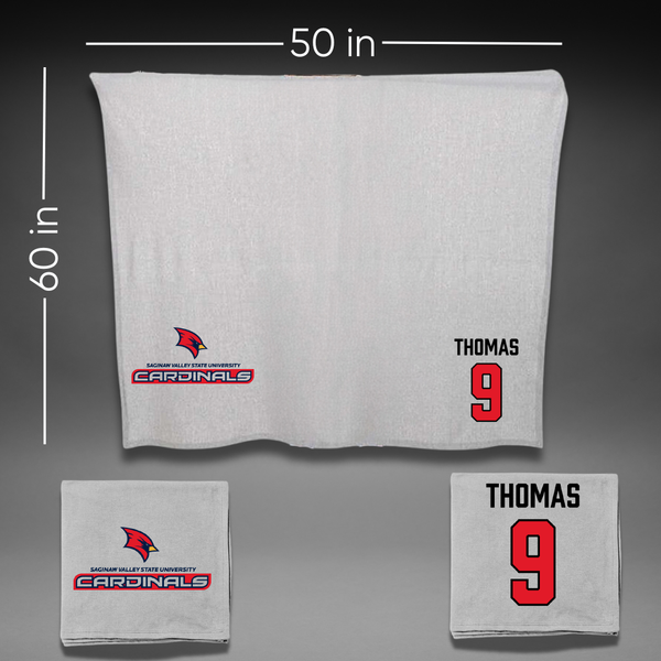 Saginaw Valley State University Baseball Gray Blanket - #9 JT Thomas