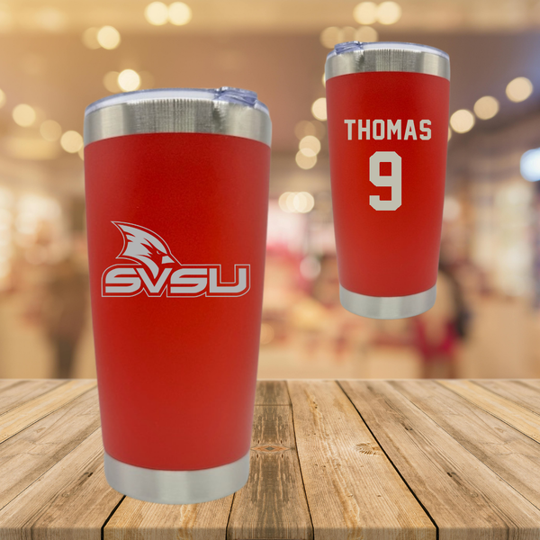 Saginaw Valley State University Baseball Red Stainless Steel Tumbler - #9 JT Thomas