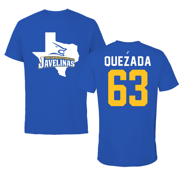 Texas A&M University-Kingsville Football Blue State Tee - #63 Juan Quezada
