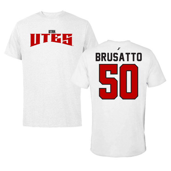 University of Utah Football White Classic Tee - #50 Justice Brusatto