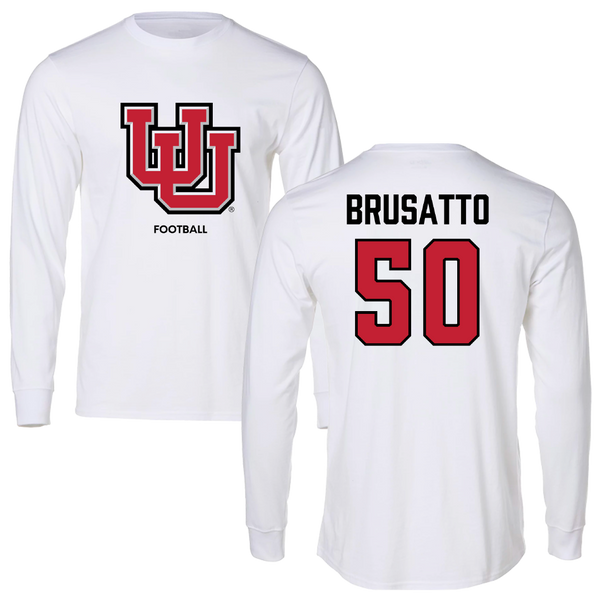 University of Utah Football White Block Long Sleeve - #50 Justice Brusatto