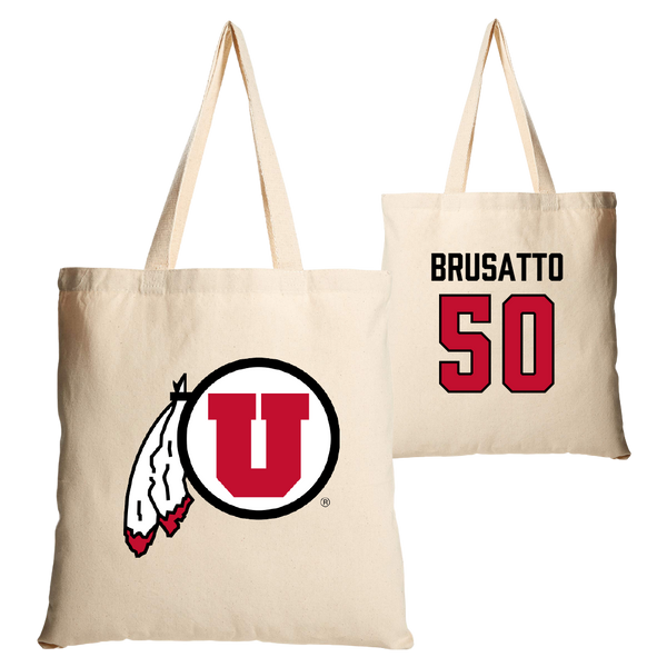 University of Utah Football Tan Canvas Tote Bag - #50 Justice Brusatto