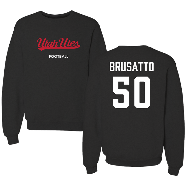 University of Utah Football Black Crewneck - #50 Justice Brusatto
