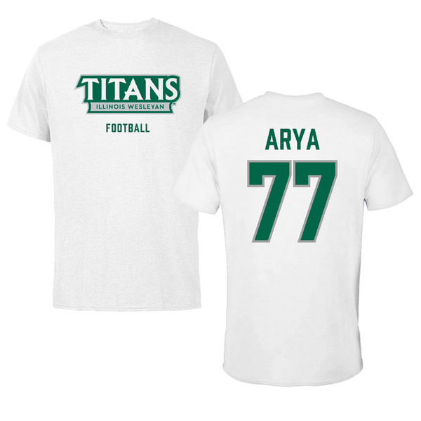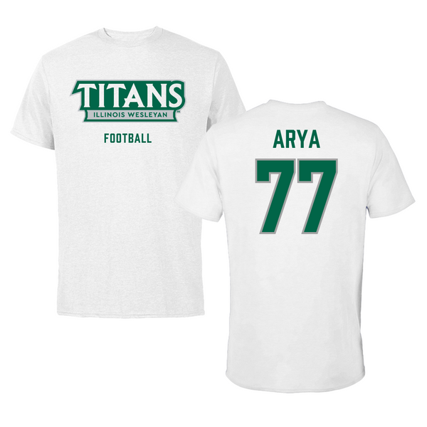Illinois Wesleyan University Football White Tee - #77 Justin Arya