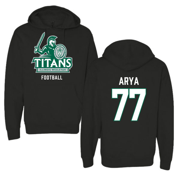 Illinois Wesleyan University Football Black Hoodie - #77 Justin Arya