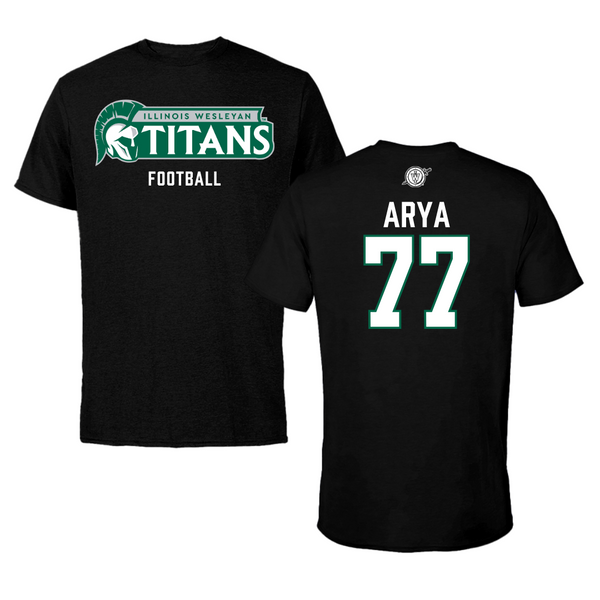Illinois Wesleyan University Football Black Tee - #77 Justin Arya