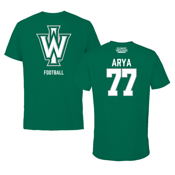 Illinois Wesleyan University Football Green Tee - #77 Justin Arya