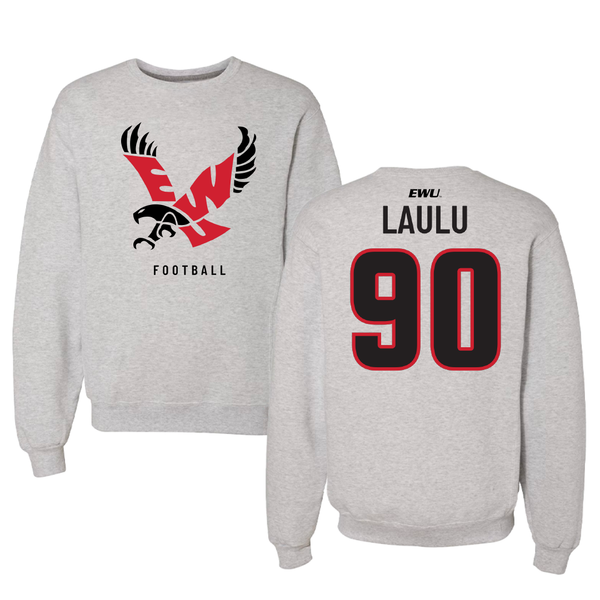 Eastern Washington University Football Gray Crewneck - #90 Justis Laulu