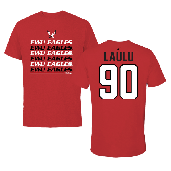Eastern Washington University Football Red Tee - #90 Justis Laulu