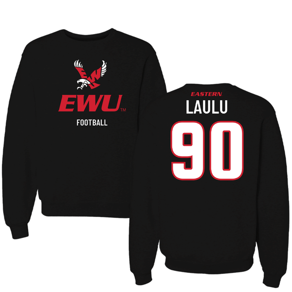Eastern Washington University Football Black EWU Crewneck - #90 Justis Laulu