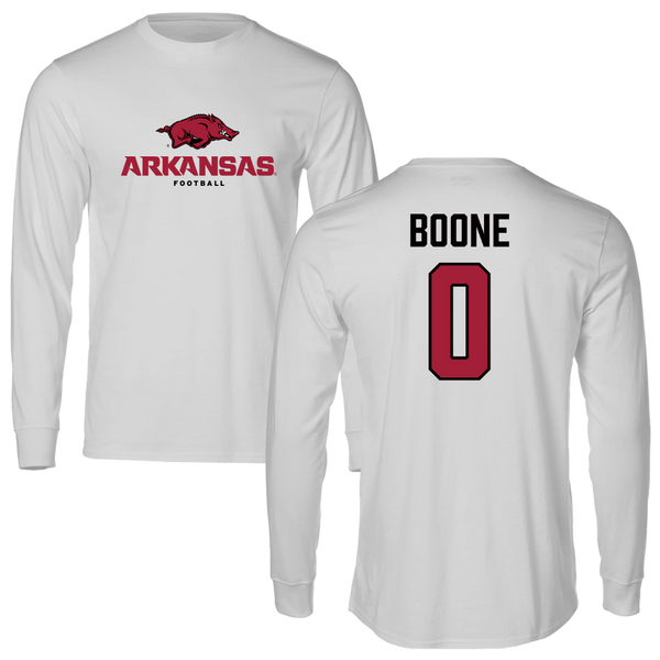 University of Arkansas Football White Classic Long Sleeve - #0 Justus Boone