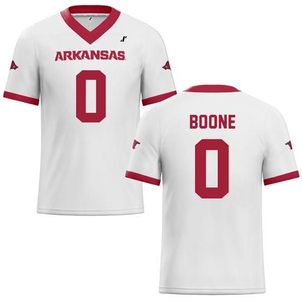 University of Arkansas White Football Jersey - #0 Justus Boone