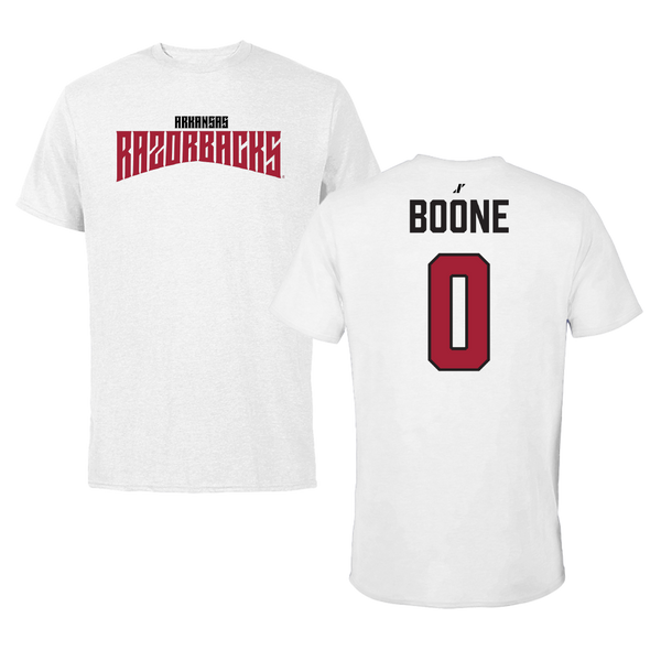 University of Arkansas Football White Classic Tee - #0 Justus Boone