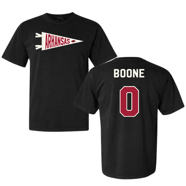 University of Arkansas Football Black Pennant Comfort Colors Tee - #0 Justus Boone