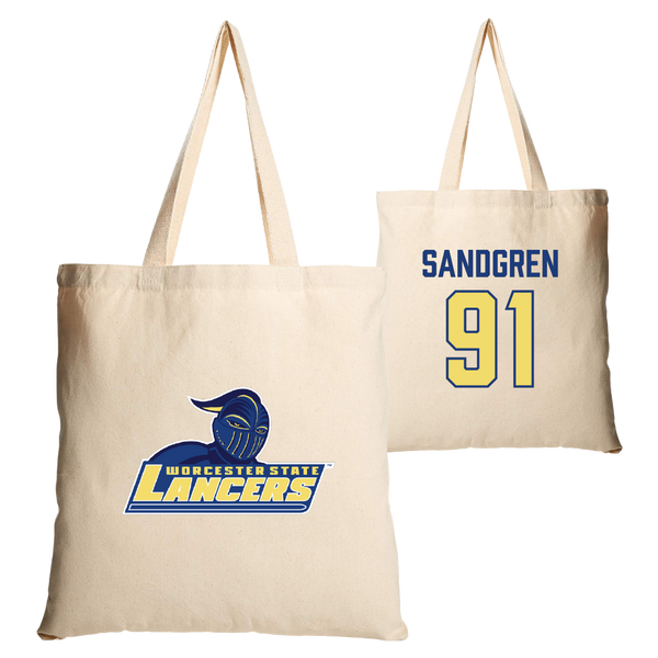Worcester State University Football Tan Canvas Tote Bag - #91 Kaden Sandgren