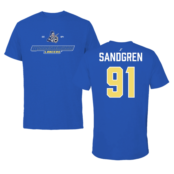 Worcester State University Football Blue Tee - #91 Kaden Sandgren