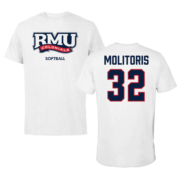 Robert Morris University Softball White Tee - #32 Kaitlyn Molitoris