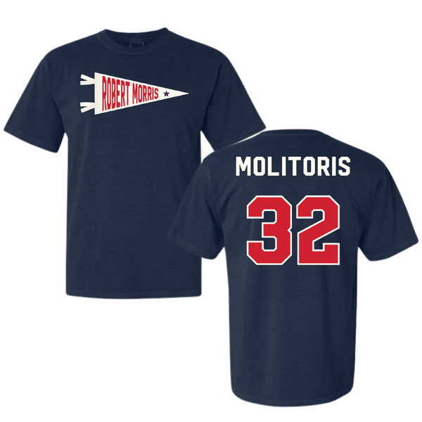 Robert Morris University Softball Navy Pennant Comfort Colors Tee - #32 Kaitlyn Molitoris