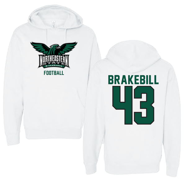 Northeastern State University Football White Hoodie - #43 Kale Brakebill