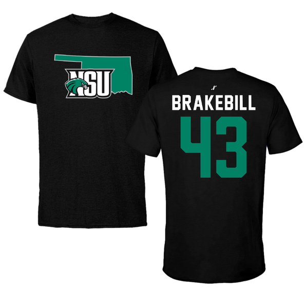 Northeastern State University Football Black State Tee - #43 Kale Brakebill
