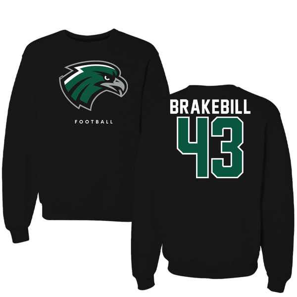 Northeastern State University Football Black Crewneck - #43 Kale Brakebill