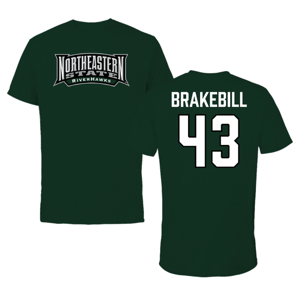 Northeastern State University Football Forest Green Block Tee - #43 Kale Brakebill