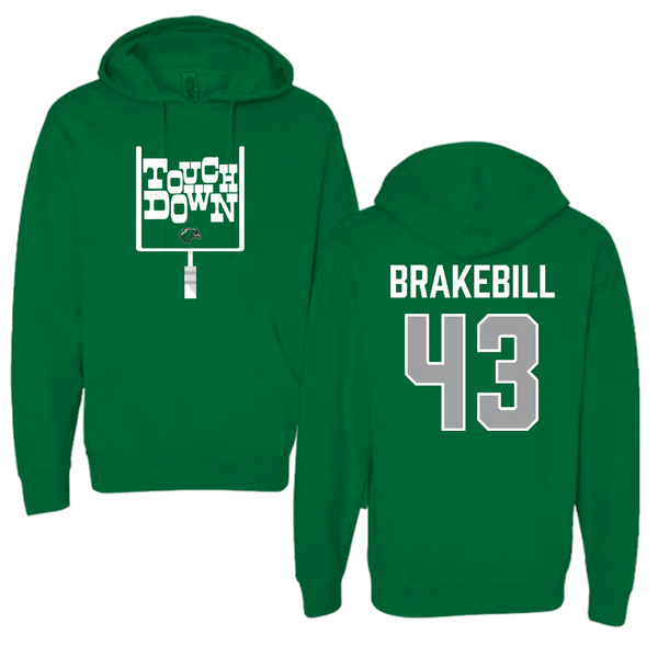 Northeastern State University Football Green Touchdown Hoodie - #43 Kale Brakebill