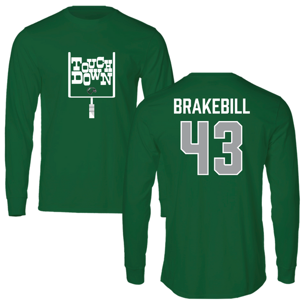 Northeastern State University Football Green Touchdown Long Sleeve - #43 Kale Brakebill