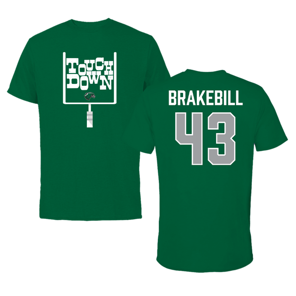 Northeastern State University Football Green Touchdown Tee - #43 Kale Brakebill