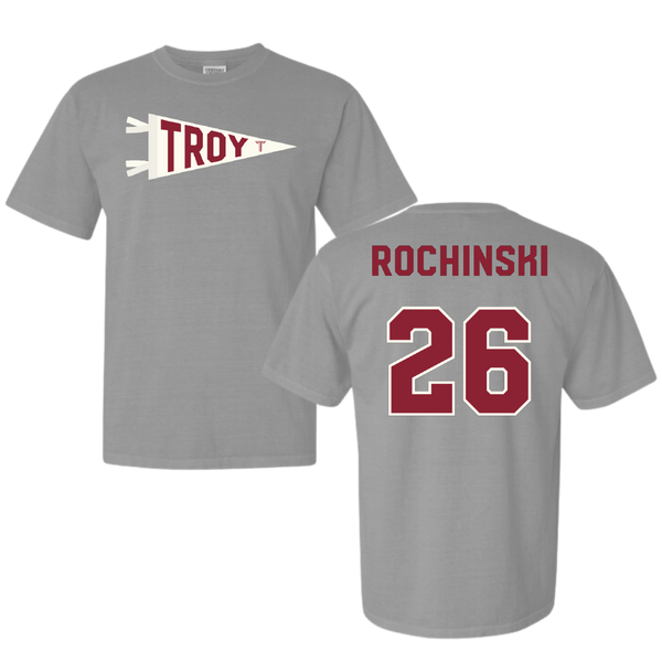 Troy University Softball Light Gray Pennant Comfort Colors Tee - #26 Kalee Rochinski