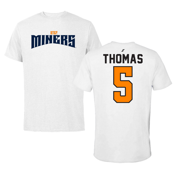 University of Texas at El Paso Football White Classic Tee - #5 Kam Thomas