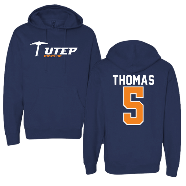 University of Texas at El Paso Football Navy Dominate Hoodie - #5 Kam Thomas