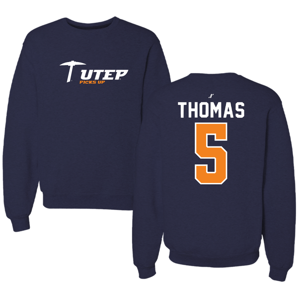 University of Texas at El Paso Football Navy General Crewneck - #5 Kam Thomas
