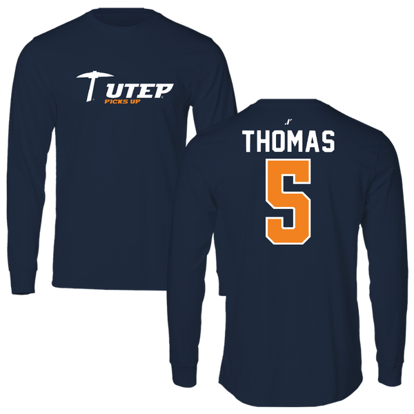 University of Texas at El Paso Football Navy Long Sleeve - #5 Kam Thomas