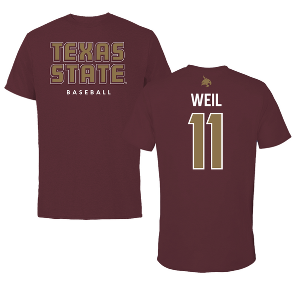 Texas State University Baseball Maroon State Tee - #11 Kameron Weil