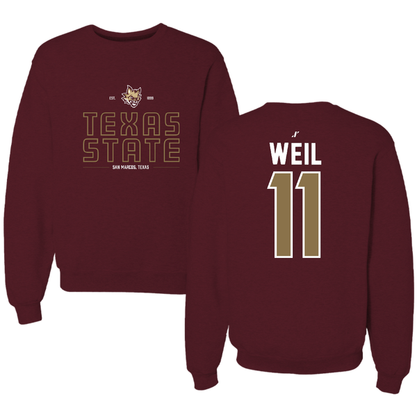 Texas State University Baseball Maroon General Crewneck - #11 Kameron Weil