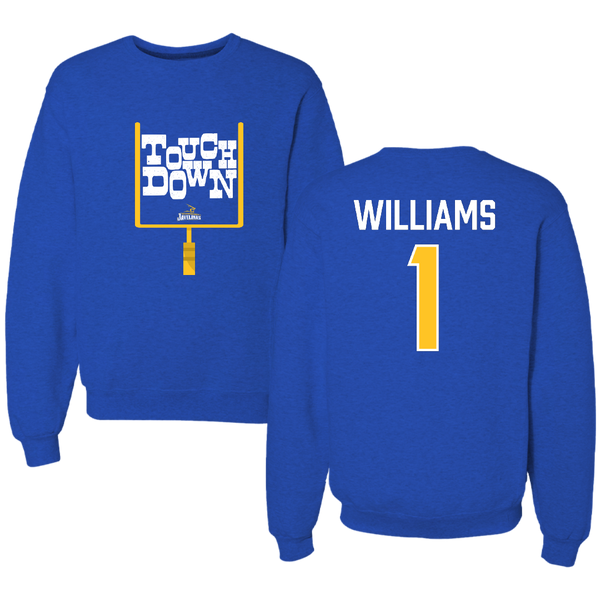 Texas A&M University-Kingsville Football Blue Touchdown Crewneck - #1 Kannon Williams
