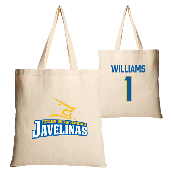 Texas A&M University-Kingsville Football Tan Canvas Tote Bag - #1 Kannon Williams