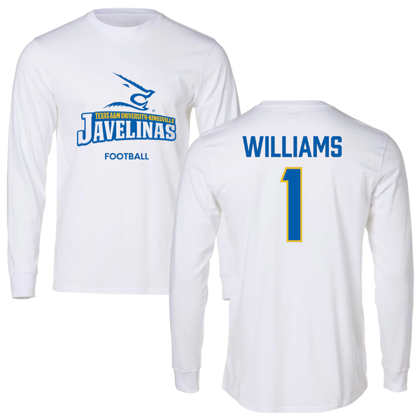 Texas A&M University-Kingsville Football White Long Sleeve - #1 Kannon Williams