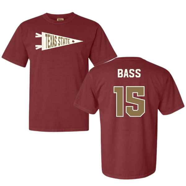 Texas State University Softball Maroon Pennant Comfort Colors Tee - #15 Karmyn Bass