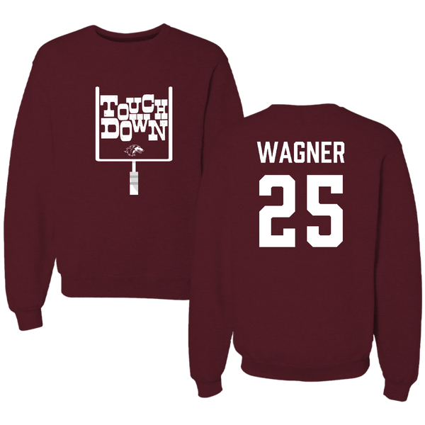 Southern Illinois University at Carbondale Football Maroon Touchdown Crewneck - #25 Kayleb Wagner