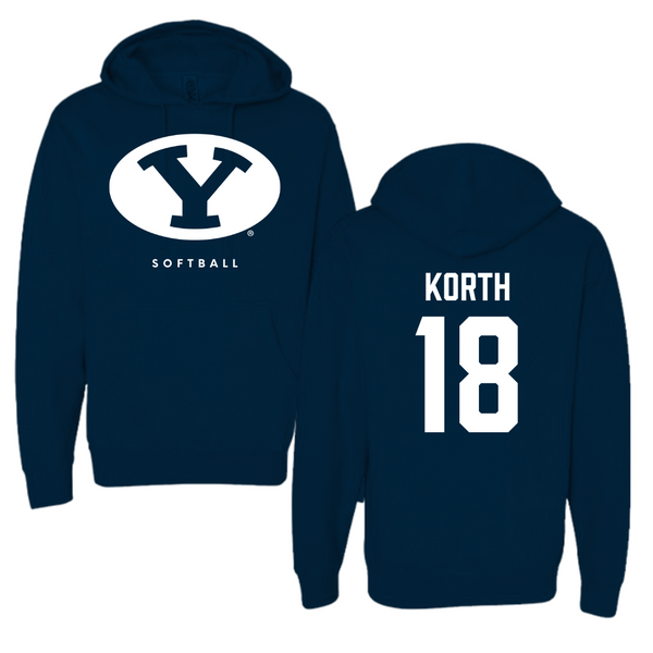 Brigham Young University Softball Navy Hoodie - #18 Kaysen Korth