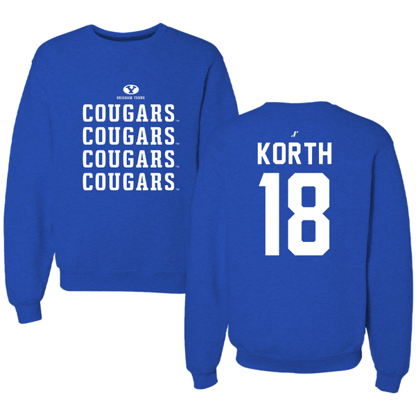 Brigham Young University Softball Blue General Crewneck - #18 Kaysen Korth