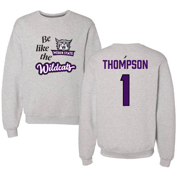 Weber State University Football Light Gray Be Like Us Crewneck - #1 Keahnist Thompson
