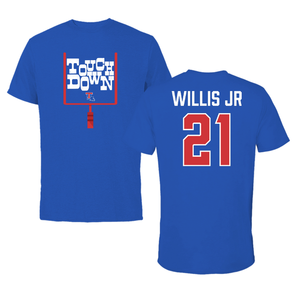 Louisiana Tech University Football Blue Touchdown Tee - #21 Keith Willis Jr