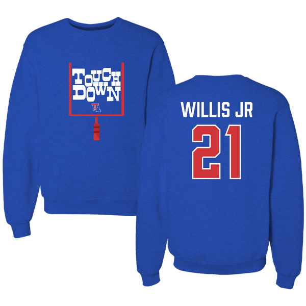 Louisiana Tech University Football Blue Touchdown Crewneck - #21 Keith Willis Jr
