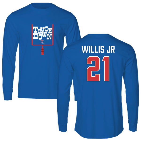 Louisiana Tech University Football Blue Touchdown Long Sleeve - #21 Keith Willis Jr