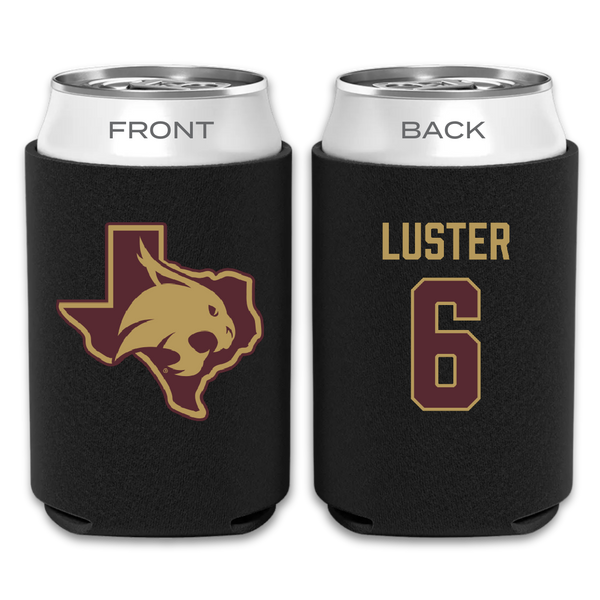 Texas State University Football Black Can Cooler - #6 Keldric Luster